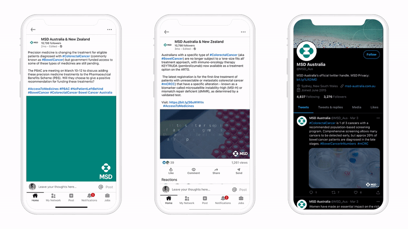 As MSD rallied for the subsidisation of Keytruda on the Pharmaceutical Benefits Scheme (PBS), we were engaged to use PR and social to put pressure on key stakeholders on the Pharmaceutical Benefits Advisory Committee (PBAC) to recommend Keytruda to be subsidised for the treatment of cancers such as CRC (AKA bowel cancer).