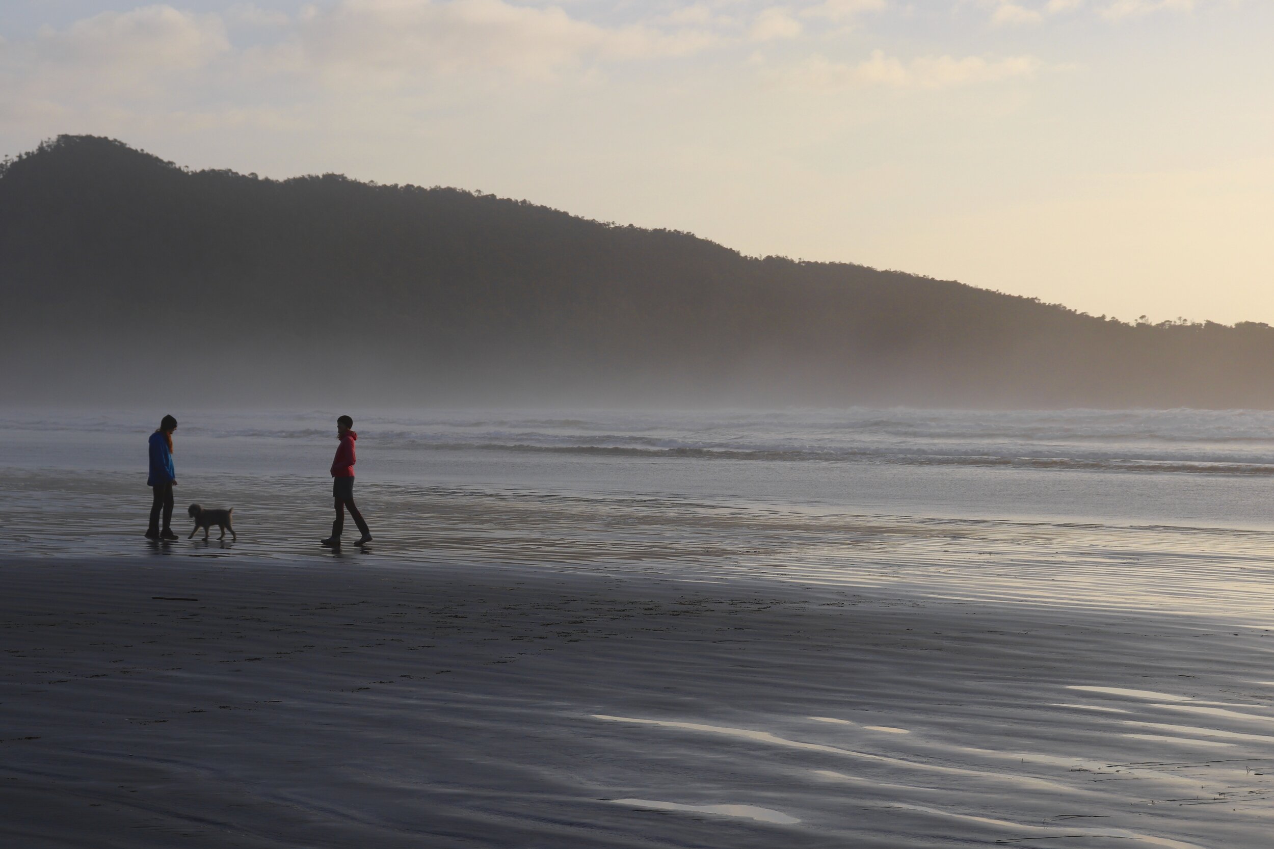 Being out on the beach, the day’s leftover light was almost blinding: reflecting and bouncing off every grain of sand, every surface. Tofino’s famous fog was coating the ground, creating this whimsical effect where the headlands look like layers ordered from darkest to lightest.